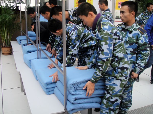 活动分国防生组和普通生组,每场比赛由11人参加。比赛要求参加的选手必须在三分钟内把棉被叠成无皱褶、外形整齐美观的“豆腐块”形状。