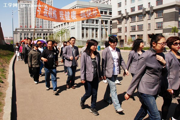 13时活动正式开始,集团领导和各部门员工迈着娇健的步伐,从学校1号楼门前广场出发,途径图书馆、船海楼、启航活动中心最终达到奥列霍夫广场。经过40分钟顺利完成整个行程。