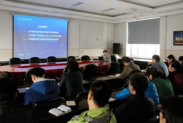 根据后勤党委2013年度工作计划的安排,11月15日下午,后勤党委特邀校纪委监察处处长李升平同志做了题为“强化岗位履责意识,深入推进教育实践活动”讲座。后勤主管及以上管理干部50余人参加了讲座。本次讲座旨在通过加强党员干部党风廉政建设形势任务教育与规范从业教育培训,增强后勤干部规范履职意识,促进后勤惩治和预防腐败体系建设,推进教育实践活动深入开展。