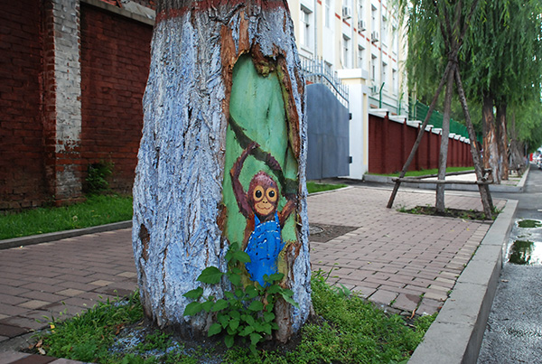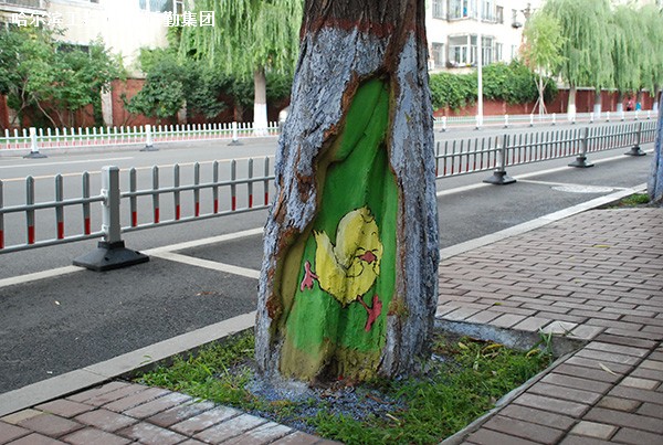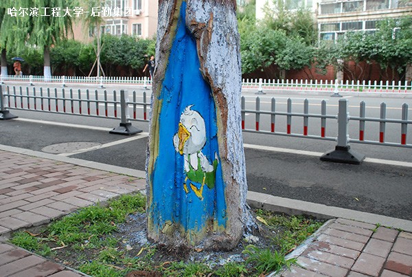 随着树龄增长,一些树木脱皮部位成了有碍观瞻的树洞。虽然这些树洞都是自然形态,但在校园美化工作中,被心思细腻的后勤人发现,开始琢磨如何将这“伤疤”妆点美化起来。近期,绿化中心联合机电工程学院工业设计专业2012级751班学生陈志国、汤海闻、赵美兰、李航等同学,开始逐步推进“树洞画”创作。