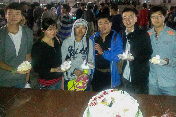 为当天过生日的同学举办赠送生日蛋糕仪式,将晚会推向了高潮。火爆的猜谜现场,伴随着悠扬浩荡的乐曲,整个活动现场始终飘荡着欢乐、温馨、祥和的气息。