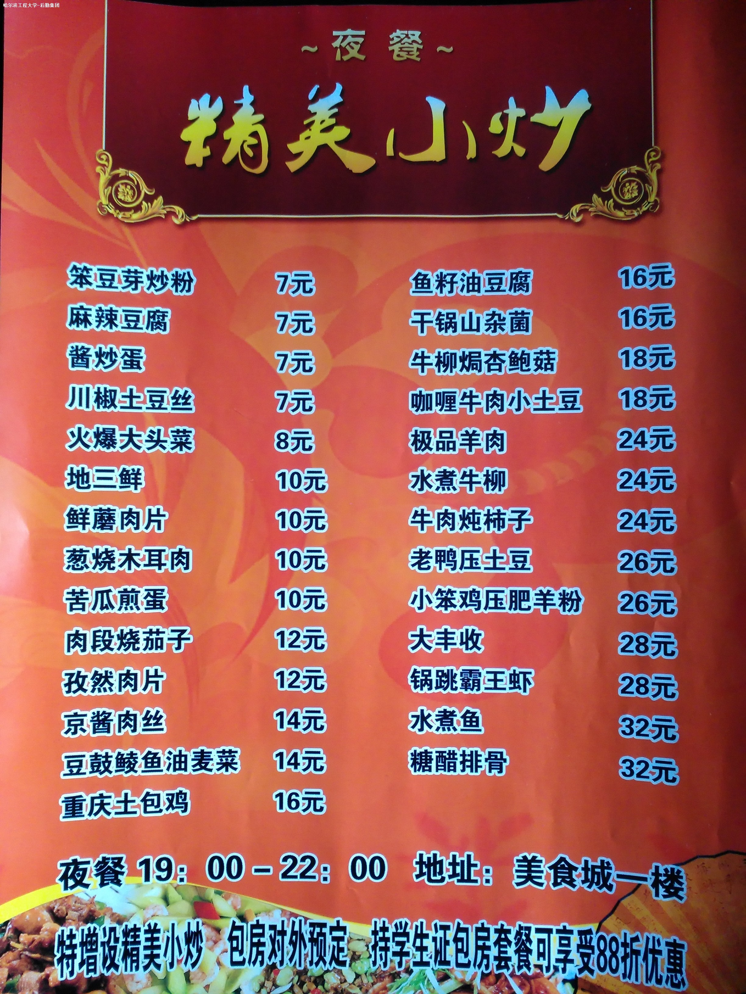 为满足广大师生就餐需求,美食城地下一层餐厅夜餐精美小炒、风味火锅于2014年12月15日正式营业。餐厅南侧设有3个包房,包房简洁明亮、温馨舒适,适合8―12人聚会就餐。