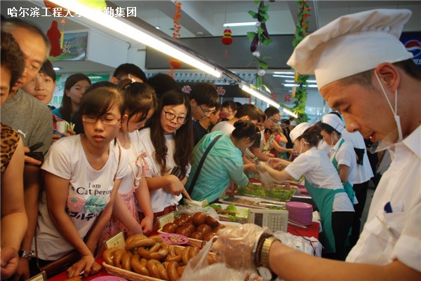 同样火爆的还有美食城二层大厅,19日,这里举办了副食品展销,全部为食堂厨师制作的以东北口味为主的特色熏酱食品,并以成本价格出售。中午11点刚刚开始,副食品餐车前就挤满了前来购买的师生,30余个品种的熟食在不到一个小时的时间内就被选购一空,质优价廉的熏酱食品让师生们赞不绝口。