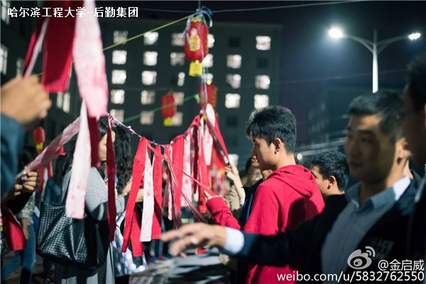皓月当空,仰望苍穹,中秋团圆夜,倍思故乡情。又逢八月十五中秋节,哈尔滨工程大学后勤集团公寓中心于新生十六公寓门前,挂红灯,贴字谜,拉开了2016年中秋灯谜会盛宴的序幕。活动于当日18时开始,天刚擦黑,现场就人头攒动。新同学,老同学,还有教职工带着小朋友,大家有的用手机、有的用纸笔记录答案,然后到兑奖处核对谜底,只要答对5道谜题就能得到一块中秋月饼作为奖励。赢得月饼的同学欢呼雀跃,错失奖品的同学扼腕叹息,礼物虽轻,大家享受的是猜谜的雅趣。