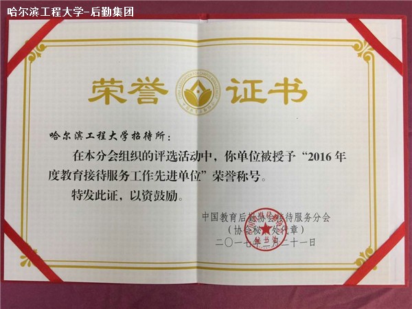 2017年3月21日,中国教育后勤协会接待服务分会2016年度总结表彰大会在南京召开,我校招待所荣获“2016年度教育接待服务工作先进单位”荣誉称号,代红文同志荣获“2016年度教育接待服务工作先进工作者”荣誉称号。