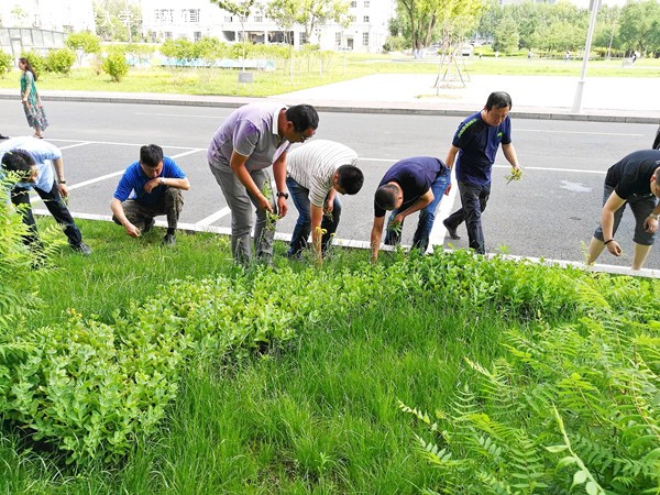 6月27日上午,经营与绿化党支部组织全体党员在十六公寓门前广场进行“美化校园环境,强化后勤服务”主题党日活动。