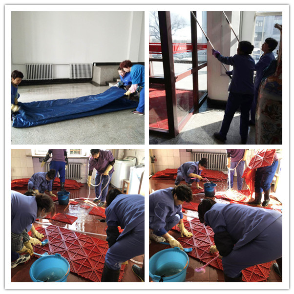 物业人少不了保洁班组的辛勤劳动,当师生还没开始一天的工作与学习,保洁班组的员工就穿好工作服在楼梯中开始收拾起垃圾,清扫卫生间。天气转暖,各楼宇也开始陆续洗刷脚垫、拆卸门把套、门帘、清洗玻璃门,其中脚垫的拆卸和清洗较为困难,保洁员就用洗衣粉泡、刷,鞋和裤子都湿了也没有怨言。清洗玻璃大门也是个难点,但是大家也都一一克服了。她们勤劳朴实,在平凡的岗位上默默付出,她们为师生的工作和学习环境带来一丝整洁。