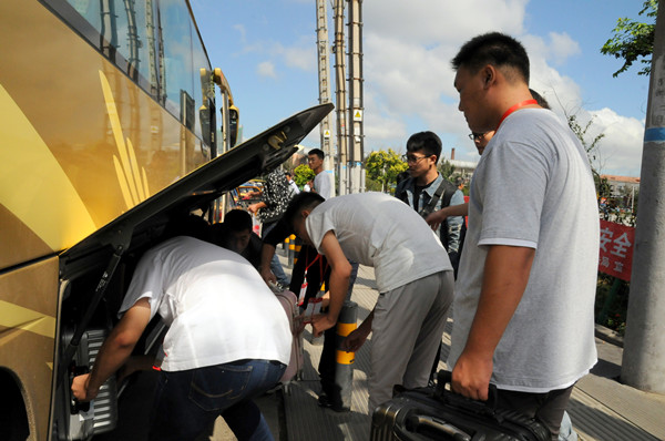 迎新期间,后勤集团接站人员每天早晨5点多就到达车站做准备工作,晚上近11点才能跟随最后一辆班车返回学校。他们克服种种困难,只为保障每一位新生及家长能够平安、顺利的到达学校。
