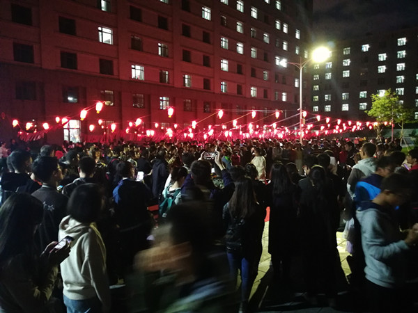 晚会即将落幕时分,公寓中心与过生日的同学们共享生日蛋糕,同学们自发的献曲献艺,赏月品饼,共度中秋佳节,甜在嘴里,情满心间……明月,红灯,微风,歌声,现场的师生们始终洋溢着和谐甜美的笑容……最后,灯谜会在同学们的依依不舍中落下帷幕。