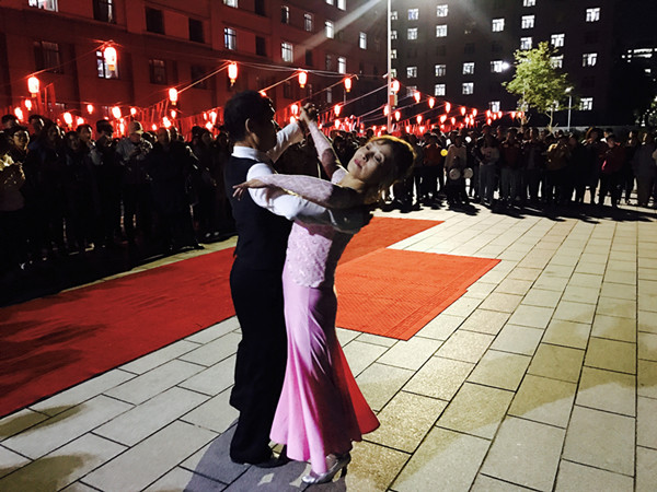 华灯初上,十六公寓广场已是人声鼎沸,热闹异常。公寓师生们精心准备的文艺盛宴一一呈现在师生们眼前:十五公寓员工李贺龙带来的华尔兹尽显超凡气质和大家风范,博得一阵阵掌声;社团学生的古典民舞和民乐的表演饱含着新时代大学生立志传承的洒脱和豪情,让师生们折服、惊叹;来自相声茶社的两对组合以妙趣横生的表演让众人情不自禁地追忆起自己身边那美好的时刻。舞蹈、相声、民乐以及现场同学们临时报名增加的歌曲表演让整个现场成为欢乐的海洋,笑容就在脸上。