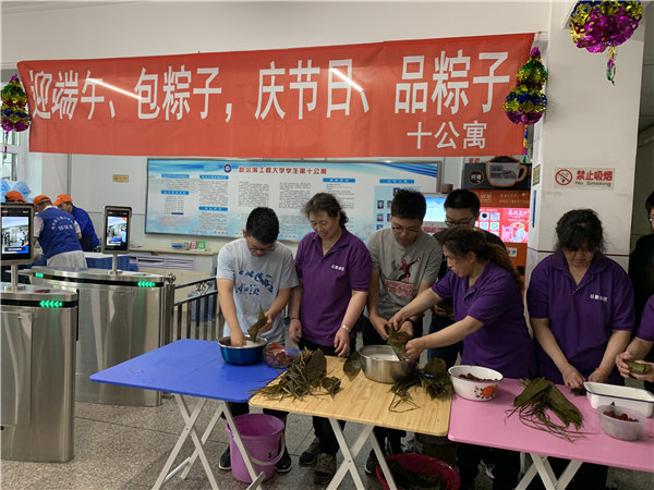 端午节是中华民族的传统节日,为进一步弘扬中国优秀传统文化,促使在校大学生了解传统习俗,提高大学生的文化修养,让这些远离家乡的孩子们也能品尝到家的味道,公寓中心在端午节期间组织同学们开展了一系列活动,与同学们共度佳节。