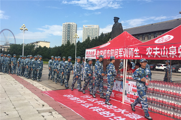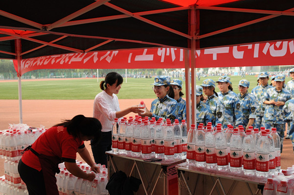 为回馈广大师生长期以来对后勤集团助学超市的支持,日前,助学超市自筹资金,开展为我校军训师生免费赠送饮品活动,活动先后在南体育场和军工操场持续开展了三天,共计送出农夫山泉1.5L矿泉水6252瓶。在炎炎烈日下为刻苦训练的教官和同学们送去一抹清凉。