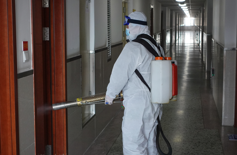 为了保障学生返校后有一个安全舒适的生活环境,后勤集团绿化中心防疫消杀小组,根据学校开学总体部署,在开学前对学生生活区域进行了一次彻底消杀,消杀范围包括学生第二、三、四、五、六、七、八、九、十、十二、十三、十四、十五、十六、十七公寓的公共区域,除公寓外也对美食城、美食广场也进行了消杀,充分保障学生安全的就餐环境。同时在学生返校前对学生进校前的第一道岗口,体育场馆中心也进行了消杀。