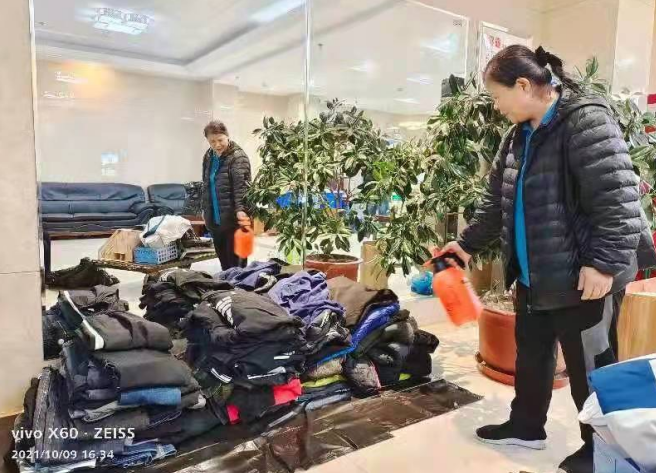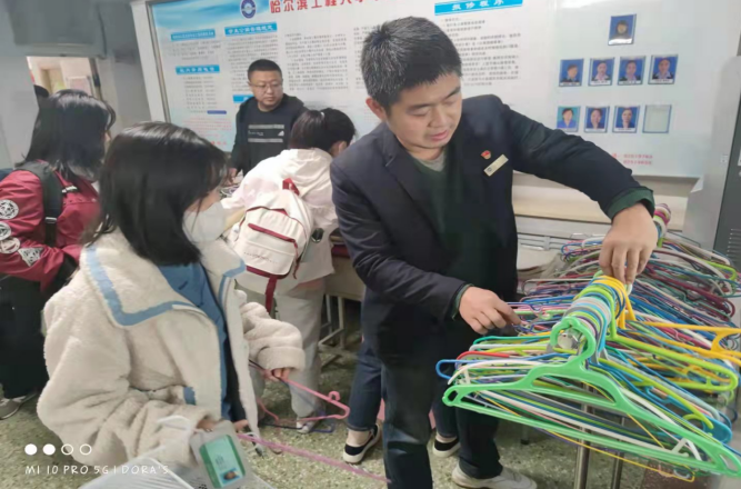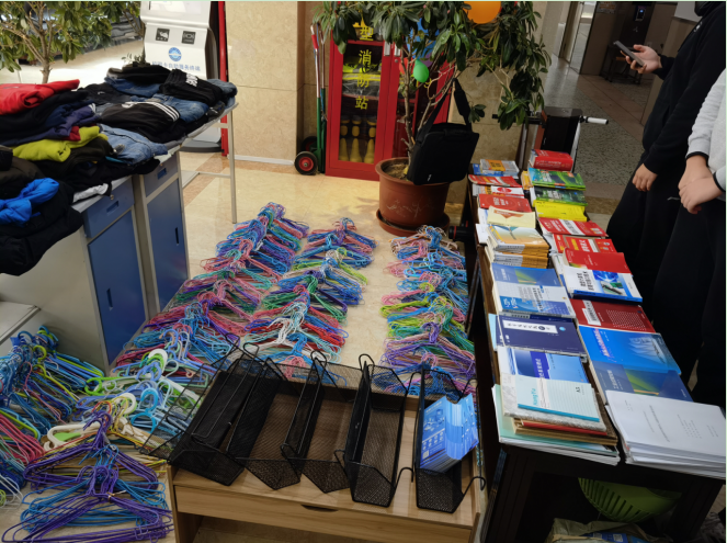 本次活动发放的物品除了学生主动捐赠外,还有保洁员在毕业生离校退寝后收集整理的,以及公寓员工们的爱心捐赠。每件物品都经过员工们的精心筛选,通过分类、检查、清洗、消毒等步骤,摆放在公寓大厅供有需求的同学自主领取。