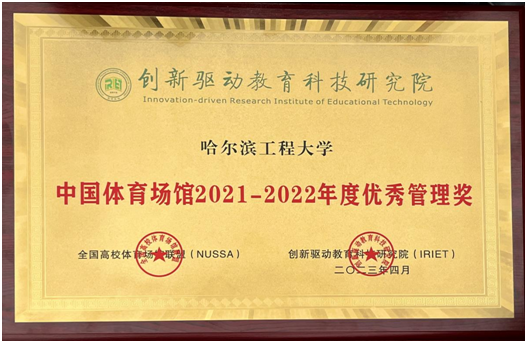 本次大会上,哈尔滨工程大学荣获“中国体育场馆2021-2022年度优秀管理奖”,后勤集团体育场馆中心主任获“中国体育场馆2021-2022年度突出贡献奖”、“中国体育场馆2021-2022年度全国优秀场馆中心主任”。