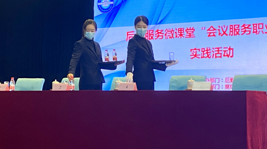 为全面落实学校“五个行动方案”,以及进一步推动后勤服务育人工作,经营服务党支部与继续教育学院航空服务专业师生联合开展主题党日活动——微课堂“会议服务职业体验”。