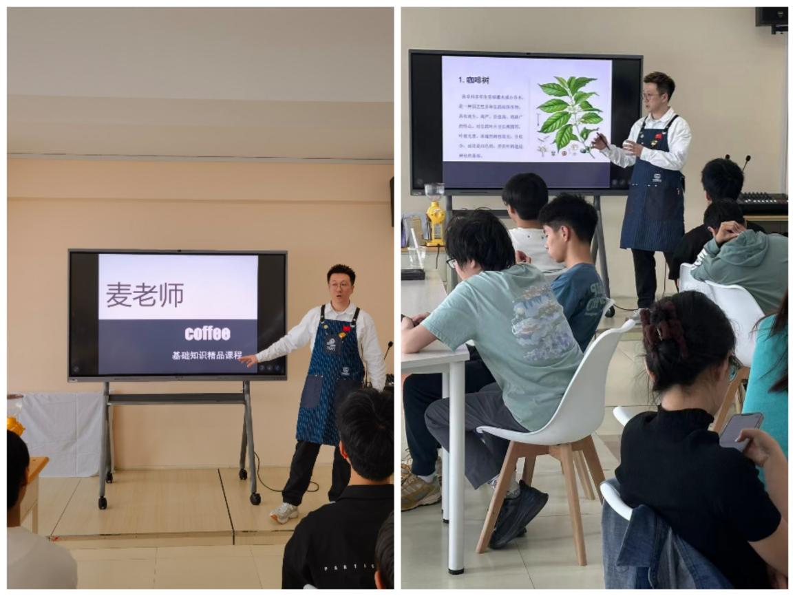 课程开始前,公寓中心的管理人员李伟健向同学们介绍了哈尔滨独特的异域风情和特色饮食文化。他介绍道,哈尔滨不仅是国家历史文化名城,也是著名的旅游城市和国际冰雪文化名城。哈尔滨的咖啡文化源远流长,最早可以追溯到19世纪,1898年随着中东铁路的修建,由外侨带到哈尔滨,拥有百年的历史。最近,随着“冻梨咖啡”、“冻柿咖啡”、“澡堂咖啡”等创新产品在网络上走红,让人们感受到传统咖啡文化与这座城市奇妙的化学反应。