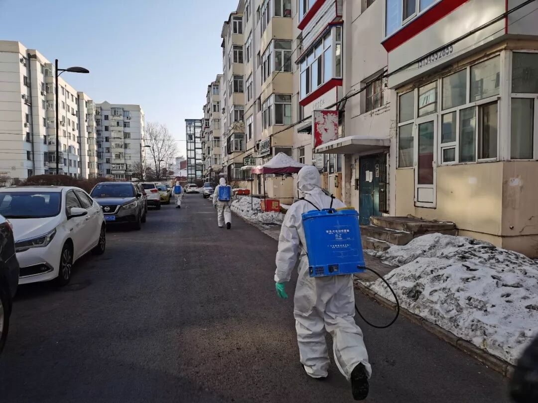 消杀分队英勇上阵,面对疫情毫不退缩。空旷又安静的楼道里,穿梭着喷洒消杀的勇士们。从一楼到顶层,再从顶层到一楼,即使在寒冬里,他们也忙碌得汗流浃背。背上喷壶里几十斤的消毒液,就是沉甸甸的责任。